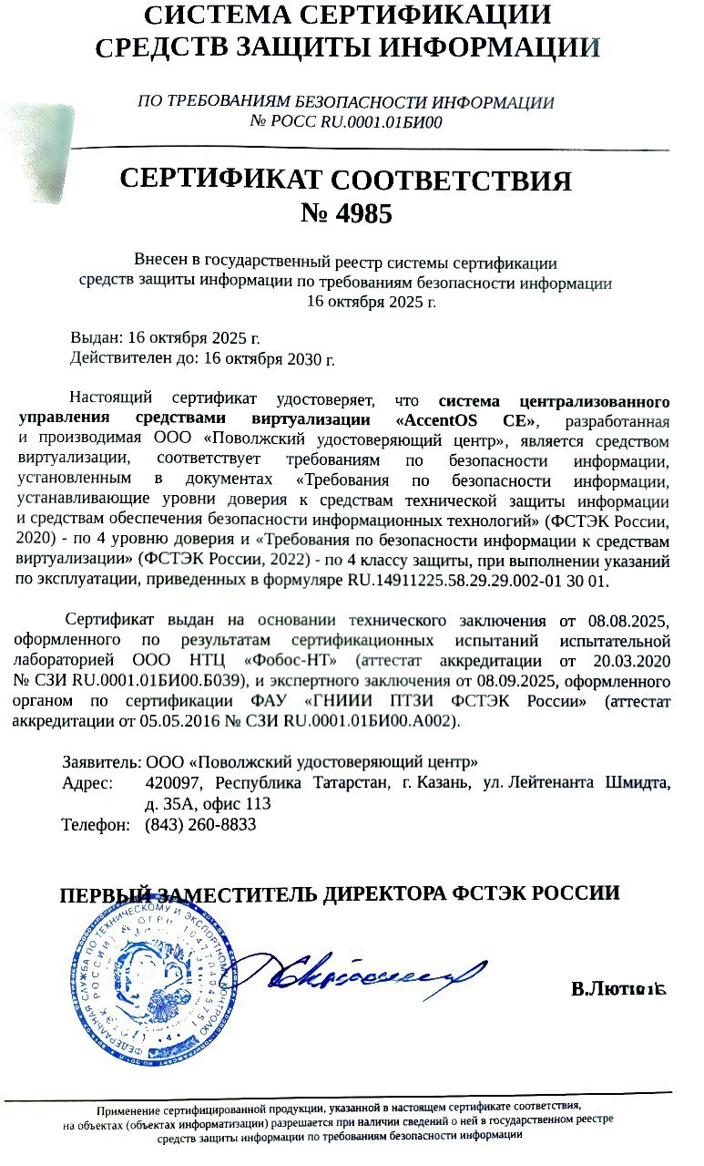 | Централизованное управление средствами виртуализации | ФБ 10 | ЗСВ.10 | ЗИС.4 |